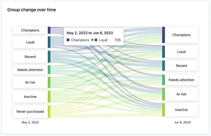 Keep in mind to track customer transition states, where customers are moving from one segment to another. This will help define the shifts across the segments and valuable insights into customer loyalty, potential churn, and overall engagement trends.